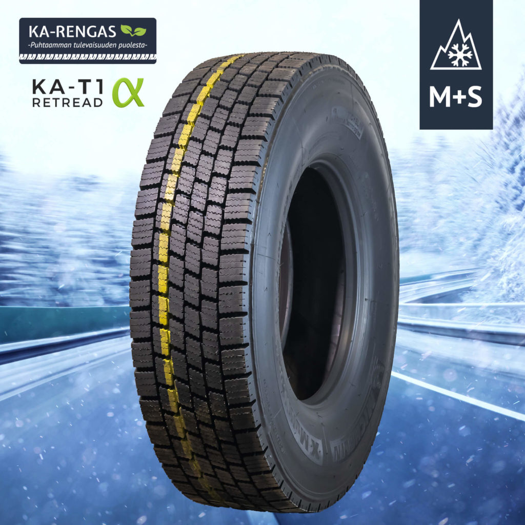 Näiden muuttuneiden tieliikenne olosuhteiden johdosta lähdimme kehittämään KA-T1™ rengasta, pitävää vetorengasta haastaviin muuttuneisiin olosuhteisiin. KA-T1™ lyhenteen “T” tulee Englannin kielisestä sanasta “Traction“, vapaasti suomennettuna “pito“, se kiteyttää lyhyesti mistä tässä uusiorenkaassa on kyse.
